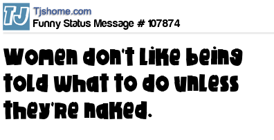 - # 107351 The only thing I know about Women: They don't like being told what to do unless they're naked.