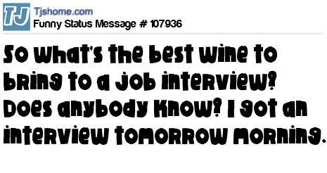 X says So what's the best wine to bring to a job interview? Does anybody know? I got an interview tomorrow morning.