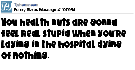 X  You health nuts are gonna feel real stupid when you're laying in the hospital dying of nothing.