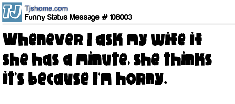 X Whenever I ask my wife if she has a minute, she thinks it's because I'm horny.