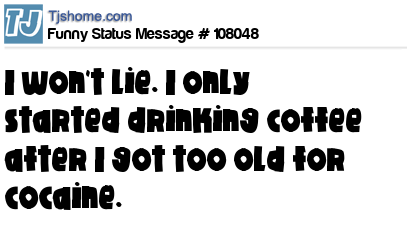 X says I won't lie. I only started drinking coffee after I got too old for cocaine.