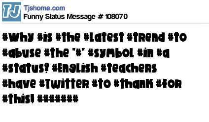 X is #Why #is #the #latest #trend #to #abuse #the "#" #symbol #in #a #status? #English #teachers #have #Twitter #to #thank #for #this! #######