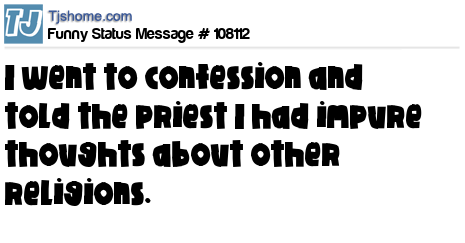 X I went to confession and told the priest I had impure thoughts about other religions.