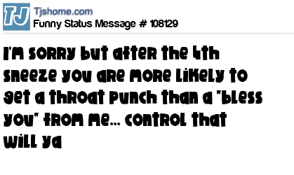 X I'm sorry but after the 4th sneeze you are more likely to get a throat punch than a "bless you" from me... control that will ya