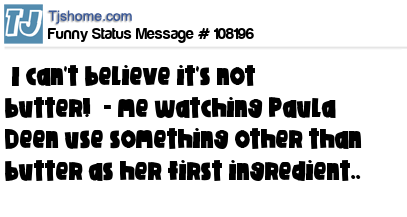 X  “I can't believe it's not butter!” - me watching Paula Deen use something other than butter as her first ingredient..