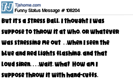 X But it's a Stress Ball, I thought I was suppose to throw it at who, or whatever was stressing me out . .when I seen the blue and red lights flashing, and that loud siren. . . .wait, wha? How am I suppose throw it with hand-cuffs.