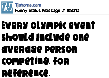 - # 108804 I think each Olympic event should include a competitor randomly picked out of the spectator stands to keep things interesting.