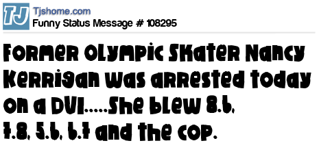 - # 108293 Former Olympic Skater Nancy Kerrigan was arrested today on a DUI.....She blew 8.6 /7.8 /5.6 /.6.7/and 7.3