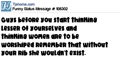 X Guys before you start thinking lesser of yourselves and thinking women are to be worshiped remember that without your rib she wouldn't exist.