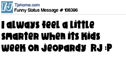 X I always feel a little smarter when its kids week on jeopardy RJ :P