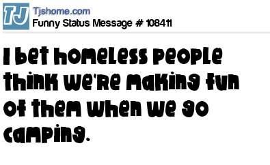 - # 129636 Always take a homeless person with you when you go camping.They're outdoorsy, work for food. & you can leave them anywhere you want to.