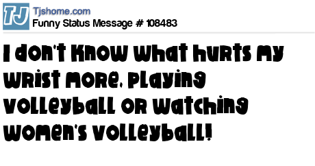 X is I don't know what hurts my wrist more, playing volleyball or watching women's volleyball!
