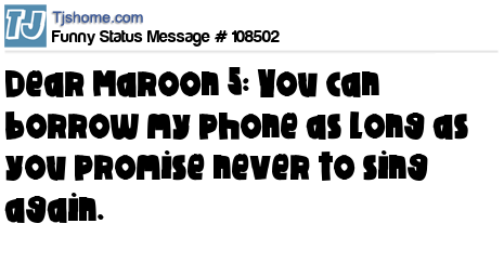 X Dear Maroon 5: You can borrow my phone as long as you promise never to sing again.