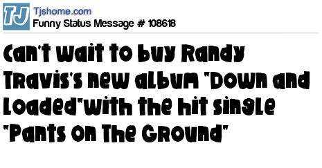 X Can't wait to buy Randy Travis's new album "Down and Loaded"with the hit single "Pants On The Ground"