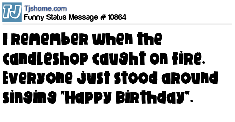 X I remember when the candleshop caught on fire. Everyone just stood around singing "Happy Birthday".