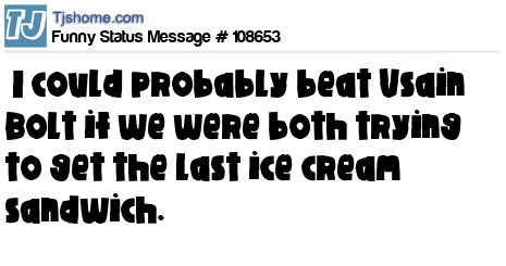X says I could probably beat Usain Bolt if we were both trying to get the last ice cream sandwich.