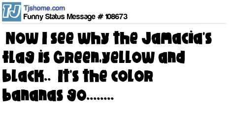 X is Now I see why the Jamacia's flag is Green,yellow and black.. It's the color bananas go........