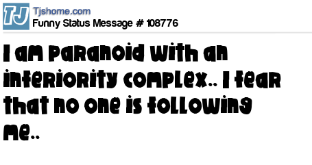 X is I am paranoid with an inferiority complex.. I fear that no one is following me..