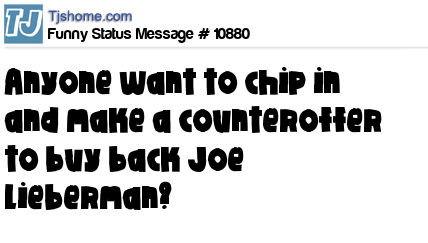 X says Anyone want to chip in and make a counteroffer to buy back Joe Lieberman?