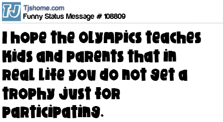 - # 108449 I hope the Olympics has taught kids and parents that in real life you do not get a trophy just for participating.