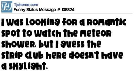 X I was looking for a romantic spot to watch the meteor shower, but I guess the strip club here doesn't have a skylight.
