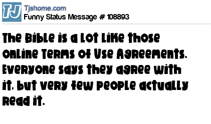 - # 157523 The Bible is basically the longest set of Terms & Conditions ever, which is why so many people agree with it without knowing why.