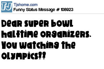 X says dear super bowl halftime organizers. You watching the Olympics??