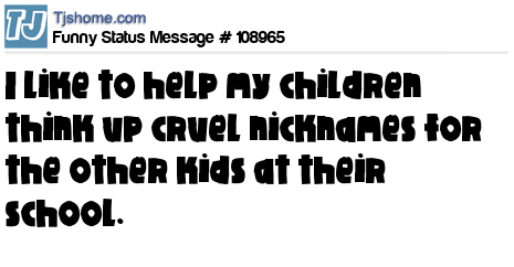 X I like to help my children think up cruel nicknames for the other kids at their school.