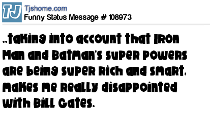 - # 108964 Seeing how Iron Man and Batman are only really smart and super rich, I'm really disappointed with Bill Gates.