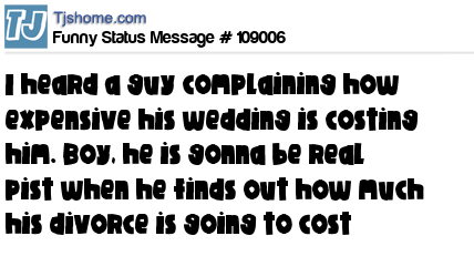 X is I heard a guy complaining how expensive his wedding is costing him. Boy, he is gonna be real pist when he finds out how much his divorce is going to cost