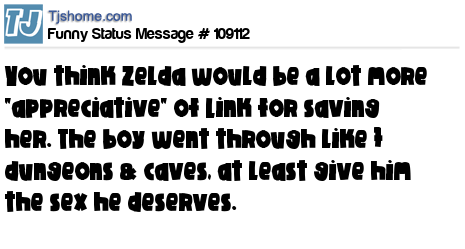 X You think Zelda would be a lot more "appreciative" of Link for saving her. The boy went through like 7 dungeons & caves, at least give him the sex he deserves.