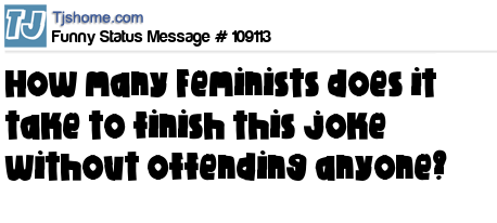 - # 152969 How many feminists does it take to change a light bulb? Answer: none, feminists can't change anything, silly!