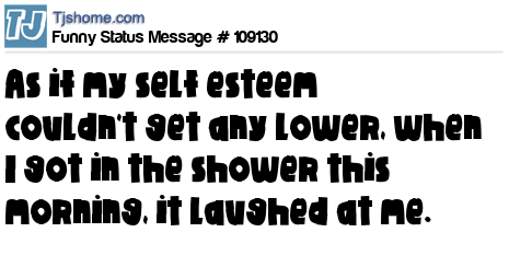 X As if my self esteem couldn't get any lower, when I got in the shower this morning, it laughed at me.
