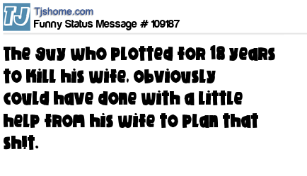 X says The guy who plotted for 18 years to kill his wife, obviously could have done with a little help from his wife to plan that sh!t.