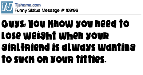 X says Guys; You know you need to lose weight when your girlfriend is always wanting to suck on your titties.
