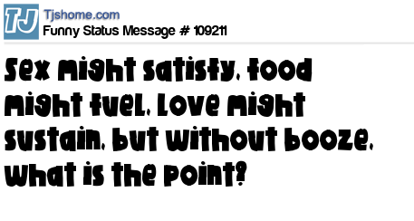 X says Sex might satisfy, food might fuel, love might sustain, but without booze, what is the point?