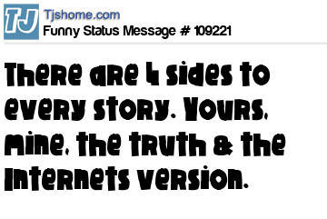 - # 108472 There are now 4 sides to every story. Yours, mine, the truth & the Internets version.