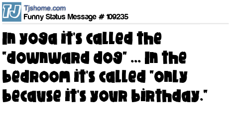 - # 130502 If Downward Doggystyle counts, then yes, I do yoga.