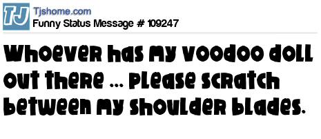 - # 173315 To whoever has my voodoo doll, please scratch between my butt cheeks. I'm out in public. Thanks.