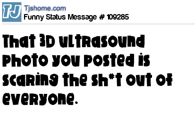 - # 79741 The best thing about an ultrasound photo is you can tag any guy you've had sex with in it and he'll think you're pregnant & that's his baby.