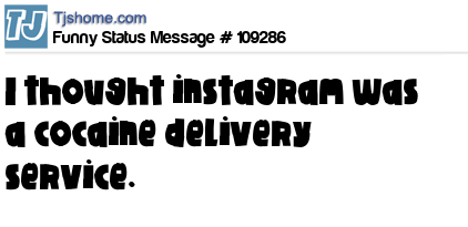 - # 180906 I have to get with the times on this social media stuff. All this time I thought Instagram was a convenient way to obtain cocaine.