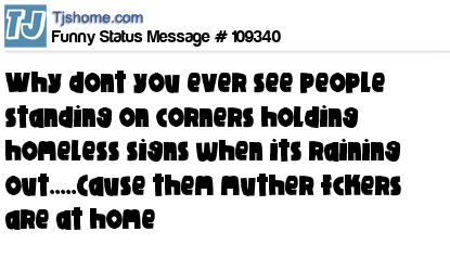 X is Why dont you ever see people standing on corners holding homeless signs when its raining out.....Cause them muther fckers are at home