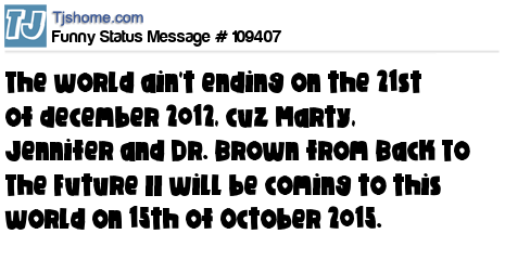 - # 85535 I know the world is NOT going to end in 2012 because Marty McFly traveled to the year 2015.