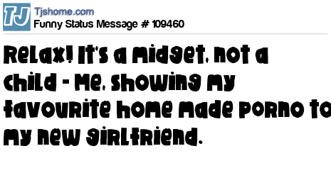 X says Relax! It's a midget, not a child - Me, showing my favourite home made p0rno to my new girlfriend.