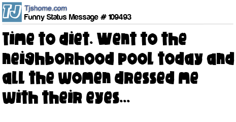X says Time to diet. Went to the neighborhood pool today and all the women dressed me with their eyes...