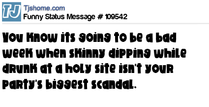 - # 109578 You know its going to be a bad week for the GOP when skinny dipping while drunk at a holy site isn't your party's biggest scandal.