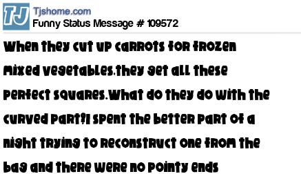 X  When they cut up carrots for frozen mixed vegetables,they get all these perfect squares.What do they do with the curved part?I spent the better part of a night trying to reconstruct one from the bag and there were no pointy ends either.