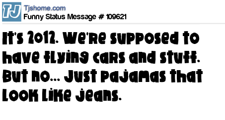 X It's 2012. We're supposed to have flying cars and stuff. But no... Just pajamas that look like jeans.