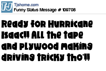 X is Ready for Hurricane Isaac!! All the tape and plywood making driving tricky tho'!!
