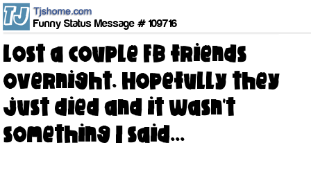X Lost a couple FB friends overnight. Hopefully they just died and it wasn't something I said...